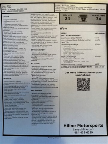 - It is the buyer’s responsibility to confirm the MSRP and options of the vehicle they purchase prior to taking possession of the vehicle. Buyers must disregard the Vehicle Features & Options Standard Features at the bottom of the listing. These options are VIN decoded, so Hiline has no way of changing. Hiline lists the car's options in the description section only. Hiline does its best to ensure these items are listed accurately. However, mistakes can occur between the time the dealer takes possession of the car, and the time that the car is sold, both in or out of favor of the buyer. This is because there are instances where specific options could have either been added to or removed from a car after the original purchase, and this information was not disclosed to the seller. It is also possible that the seller could have failed to include an option or added an option in error when listing the vehicle. In the majority of circumstances, the added or accidentally-included item will be very minor (such as the presence of slotted rotors, parking sensors, automatic spoiler, backup camera or blue-tooth capabilities). The car may be listed to include navigation if the car has a factory ready head unit, but it is important for the buyer to confirm the inclusion of the item with the seller prior to purchase. We are not responsible for omitted items which may have been coded out or deleted from the previous owner such as tire pressure sensors, blue-tooth accessories, activated rear spoilers, parking sensors, blind spot features, cameras, headlight washers, cornering headlights or comfort features. If these items do not cause any obvious faults then we are have no way of determining such changes.